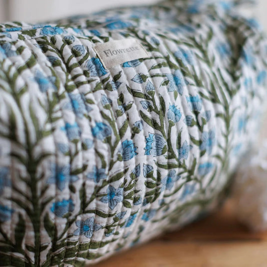 Petite trousse de toilette en tissu indien - Bleu & vert