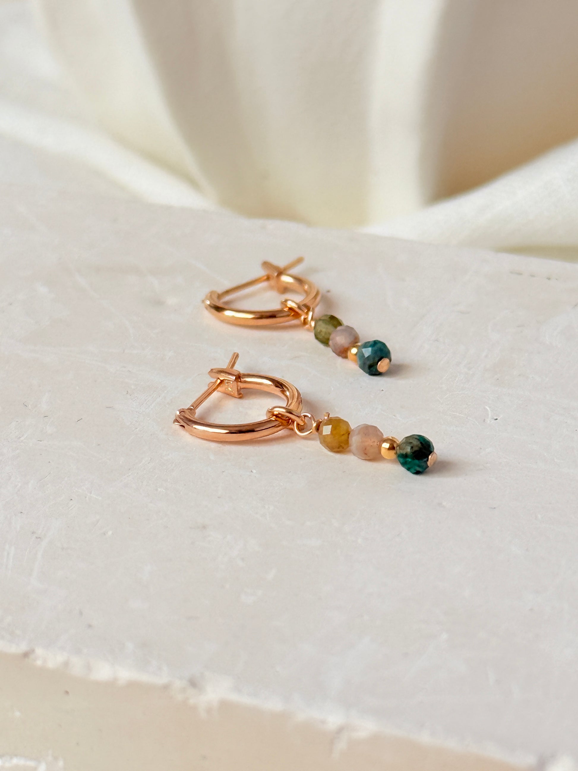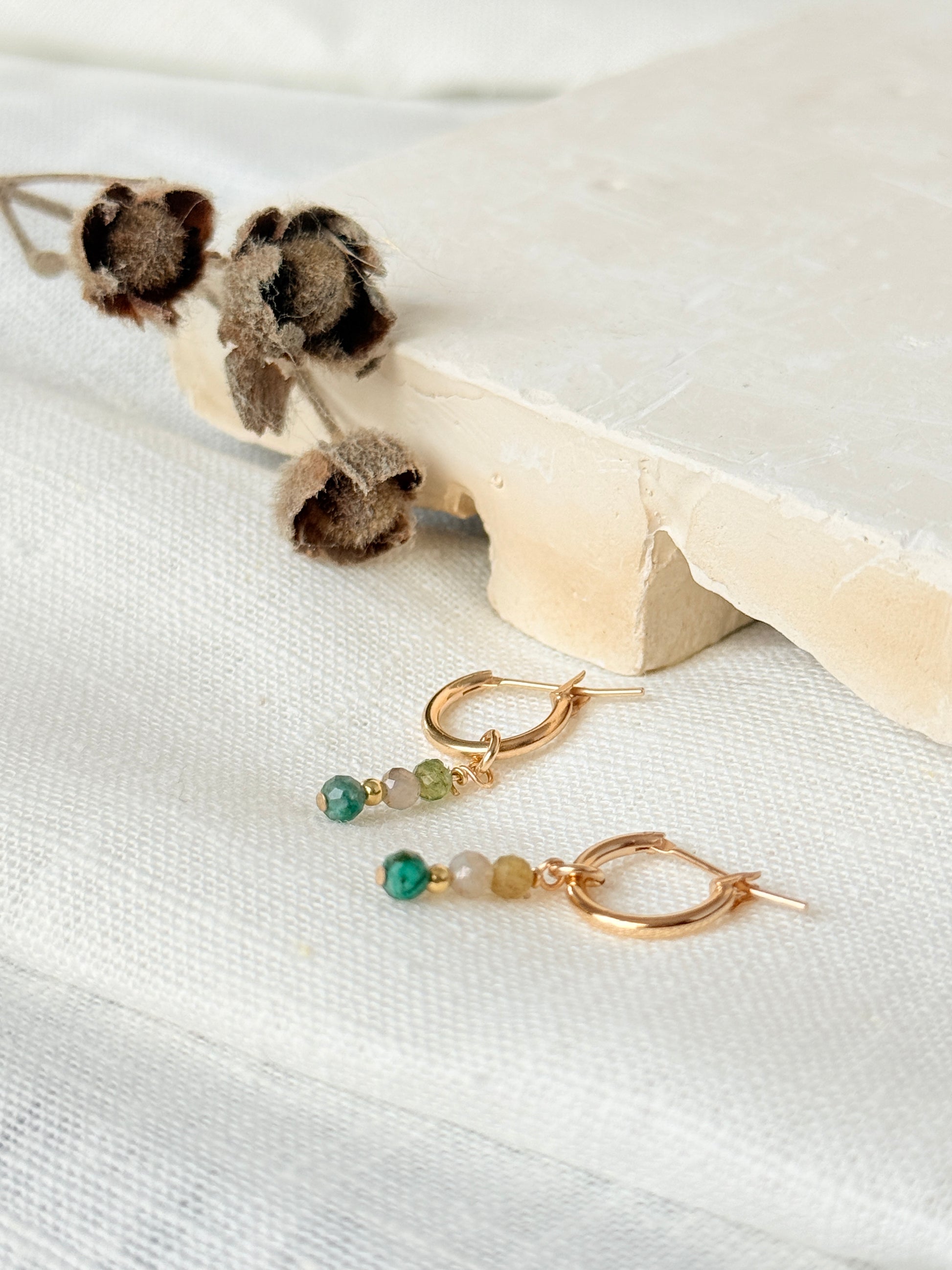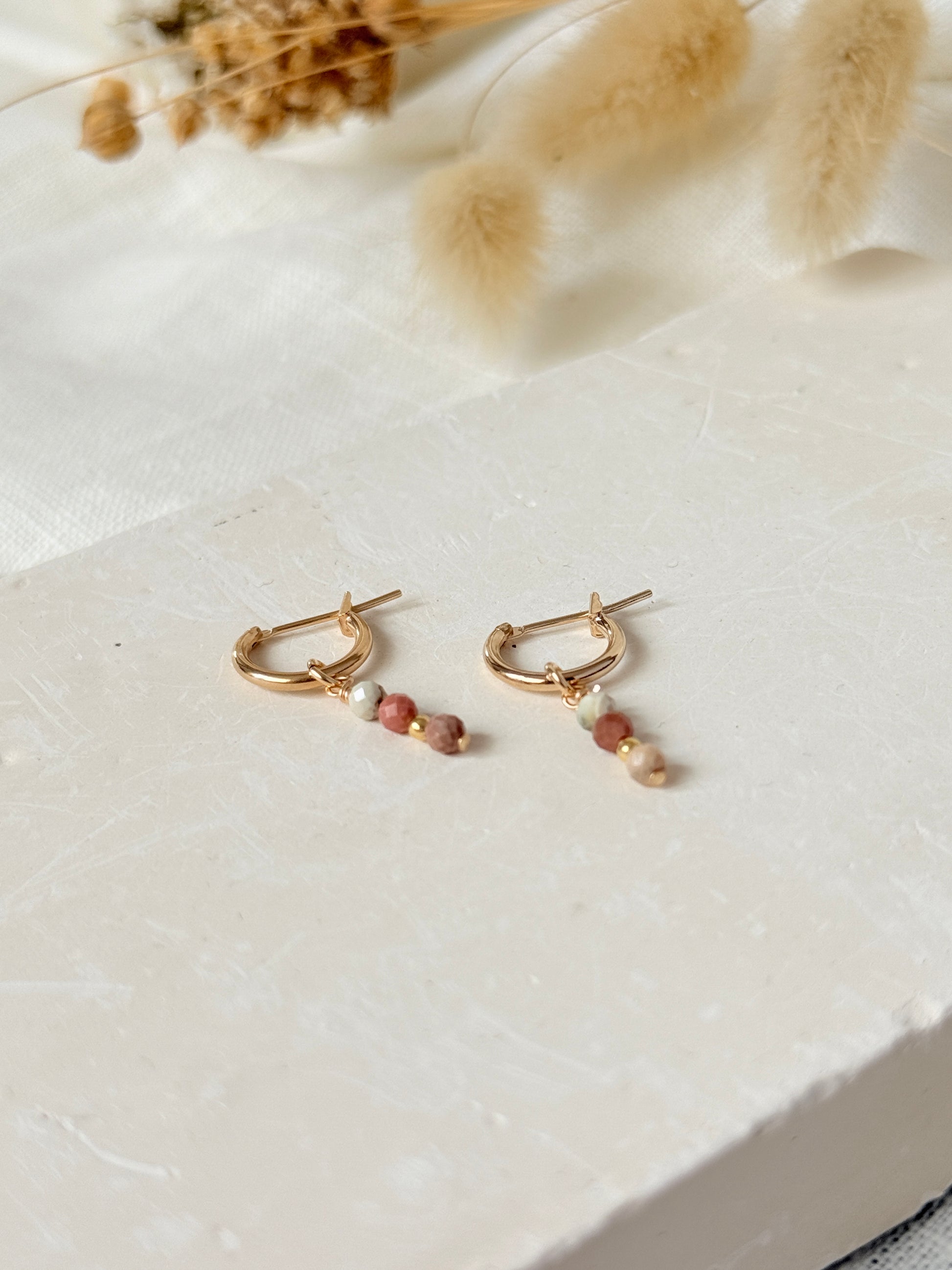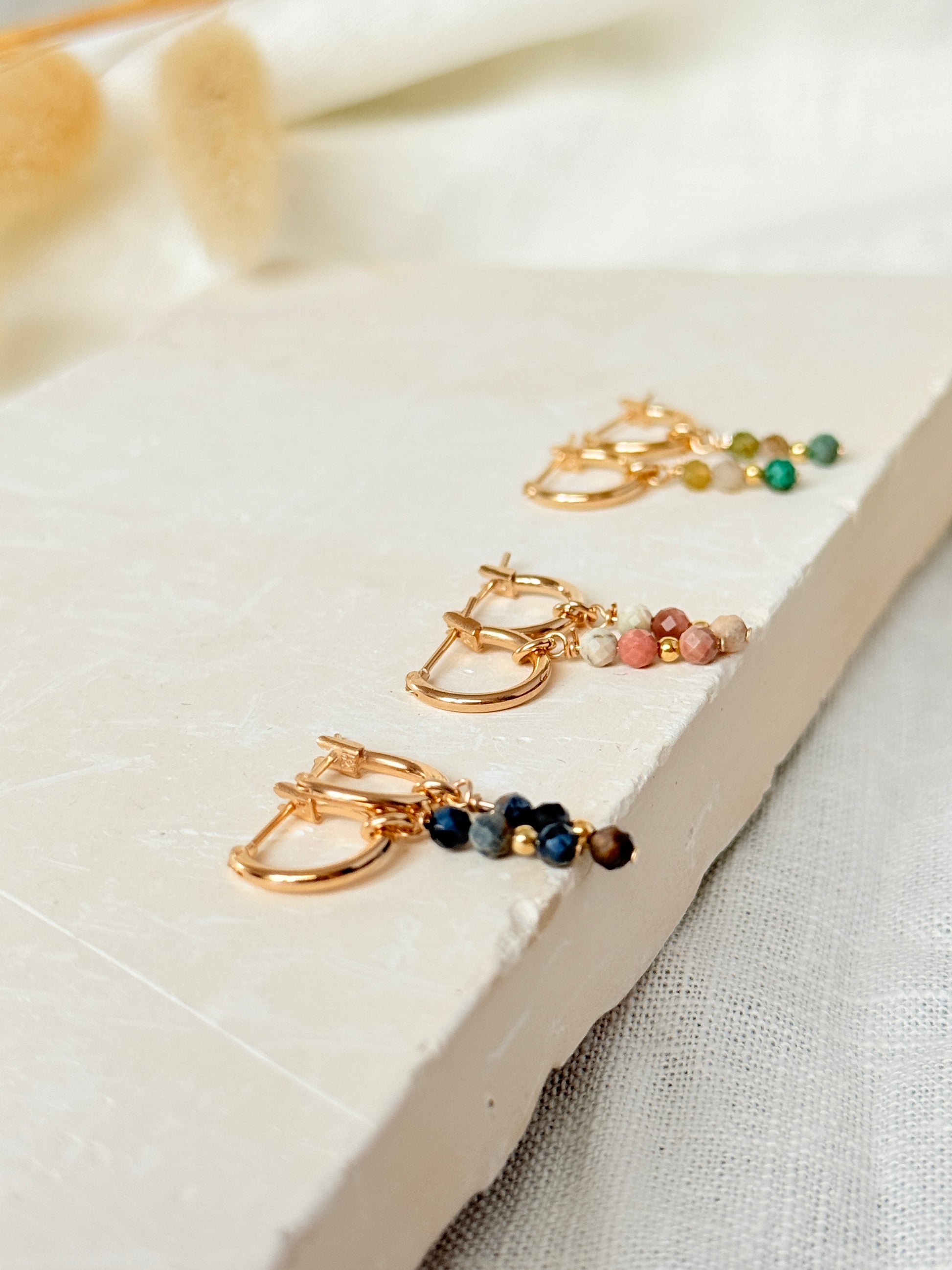 Les boucles d'oreilles en plaqué or et pierres fines seront parfaites pour apporter une note colorée à vos tenues . Elle se déclinent en plusieurs coloris possible