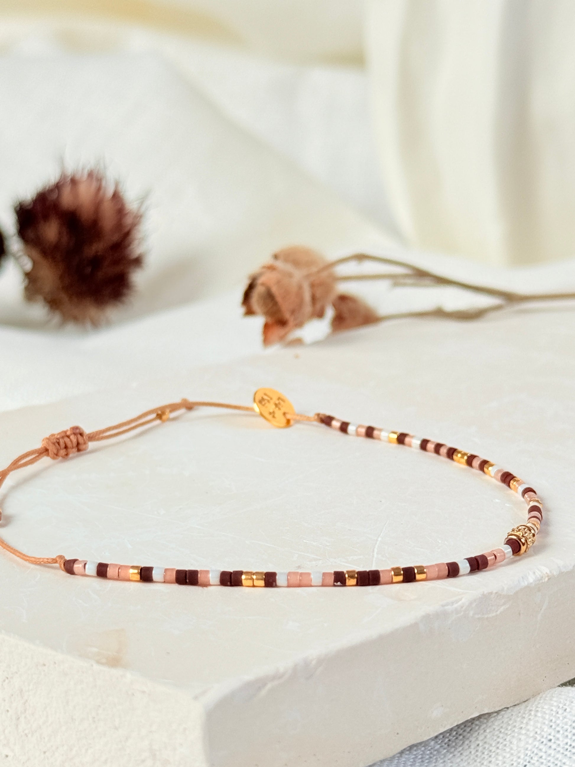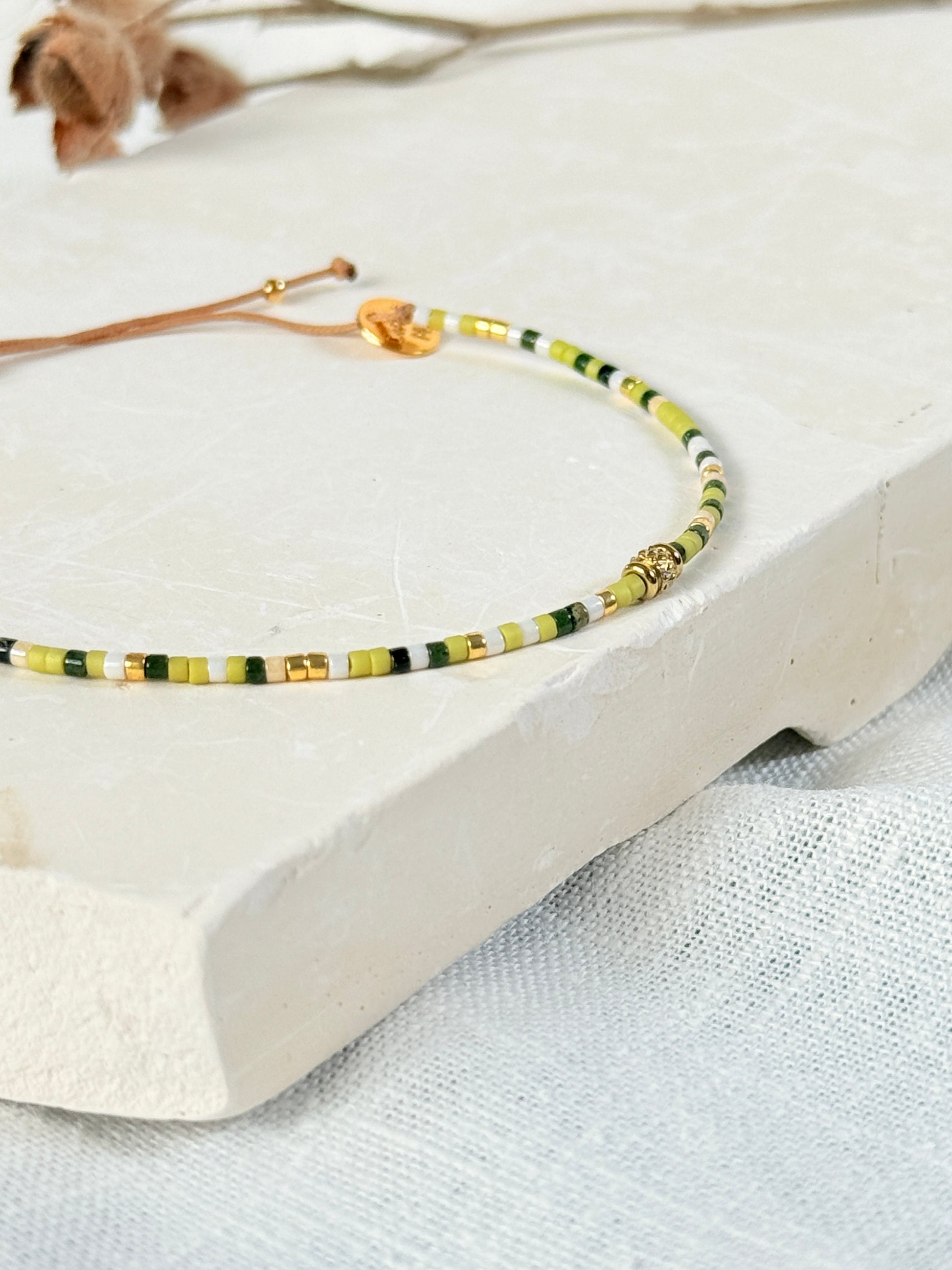 Nouveauté ! Bracelet en cordon réglable composé de perles miyuki du japon et de perles en plaqué or centrale ( tube inca)