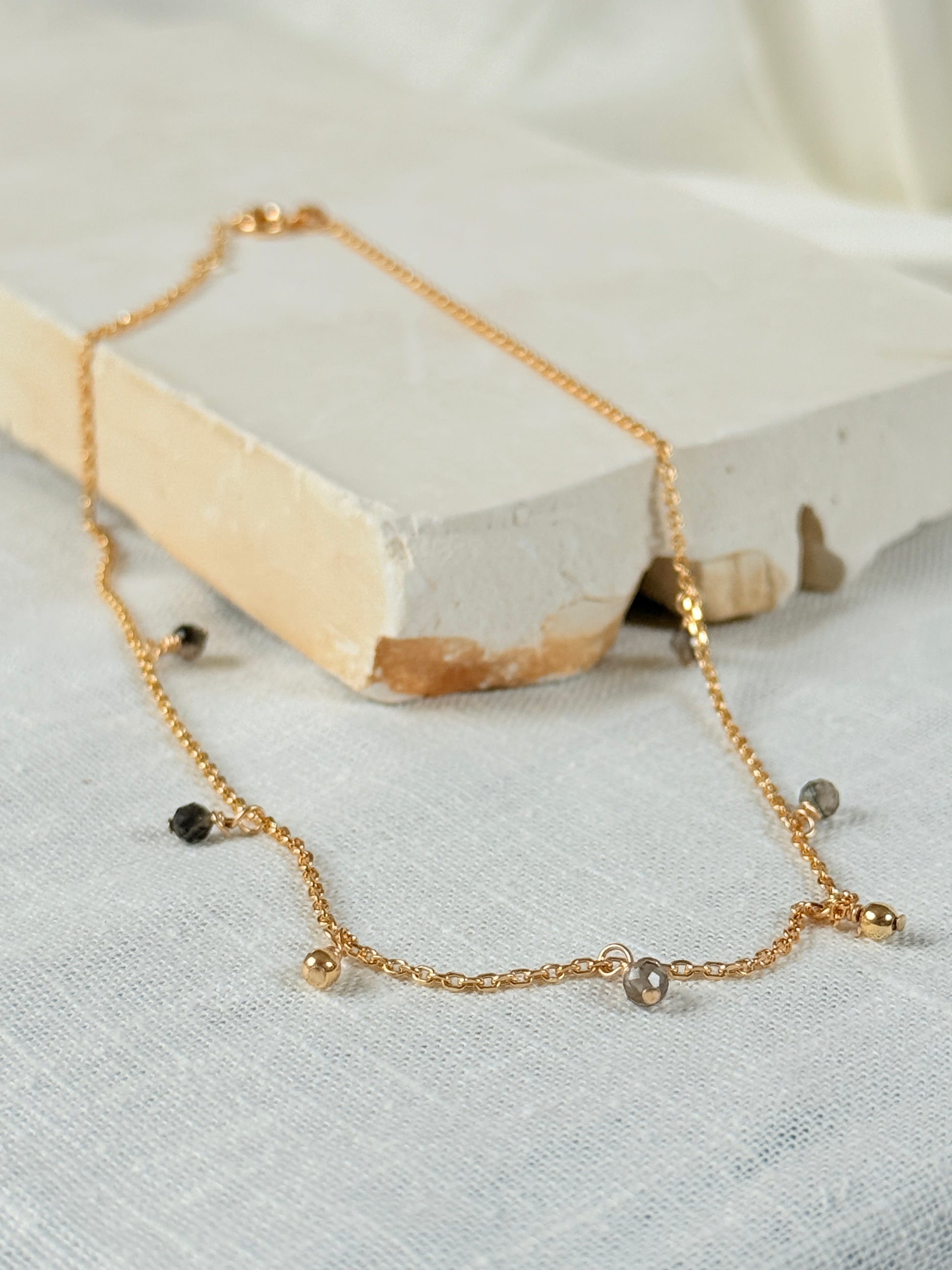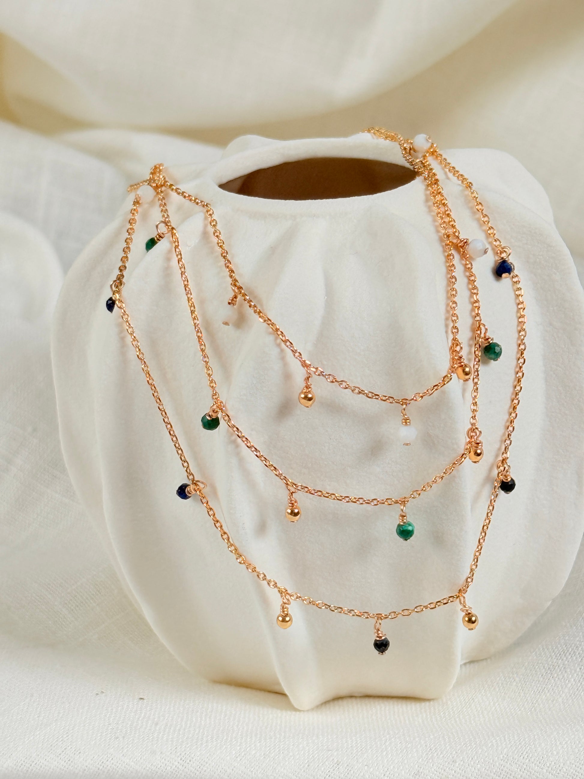 - Ce collier est composé de pierres fines naturelles et plaqué or