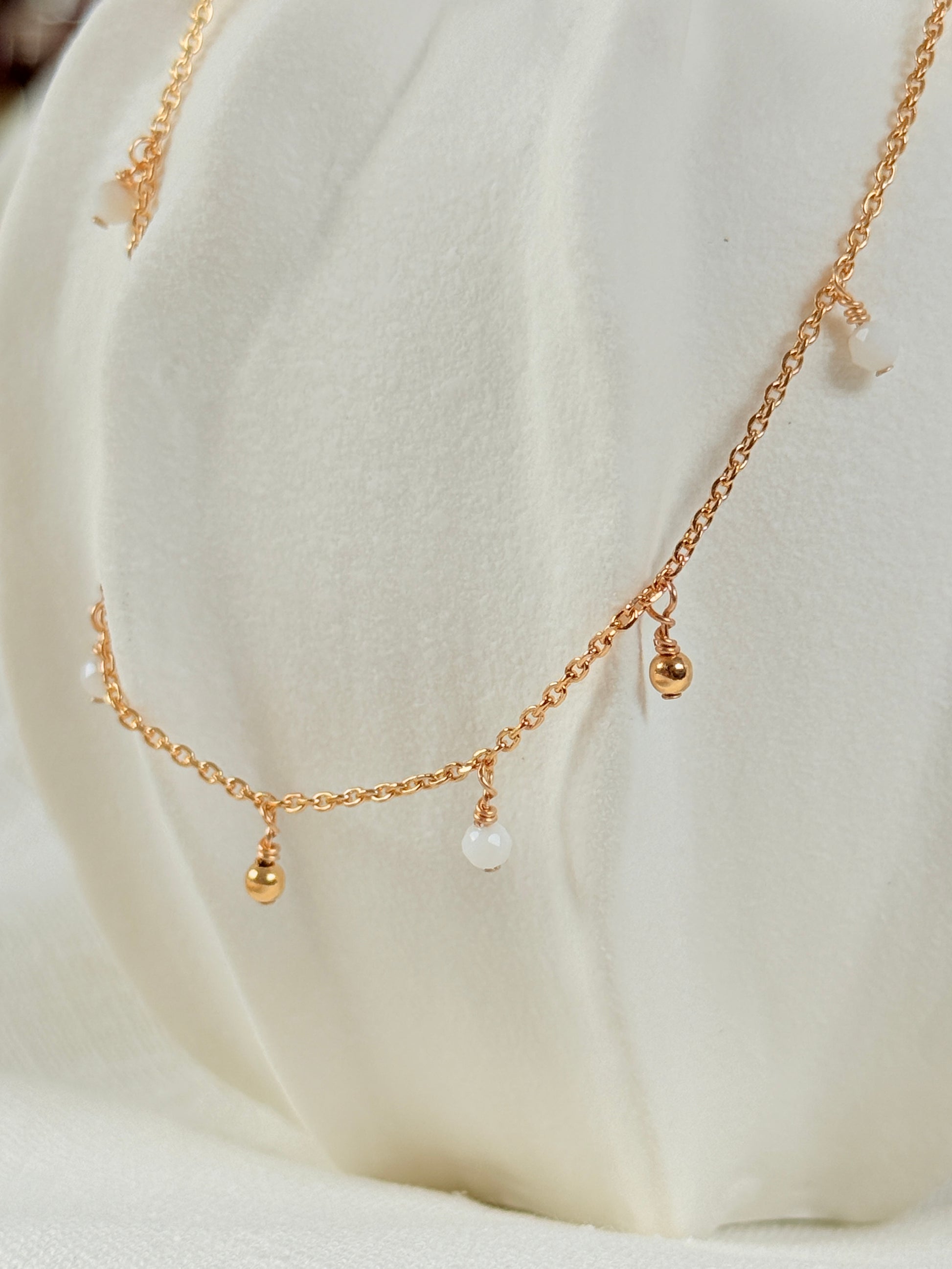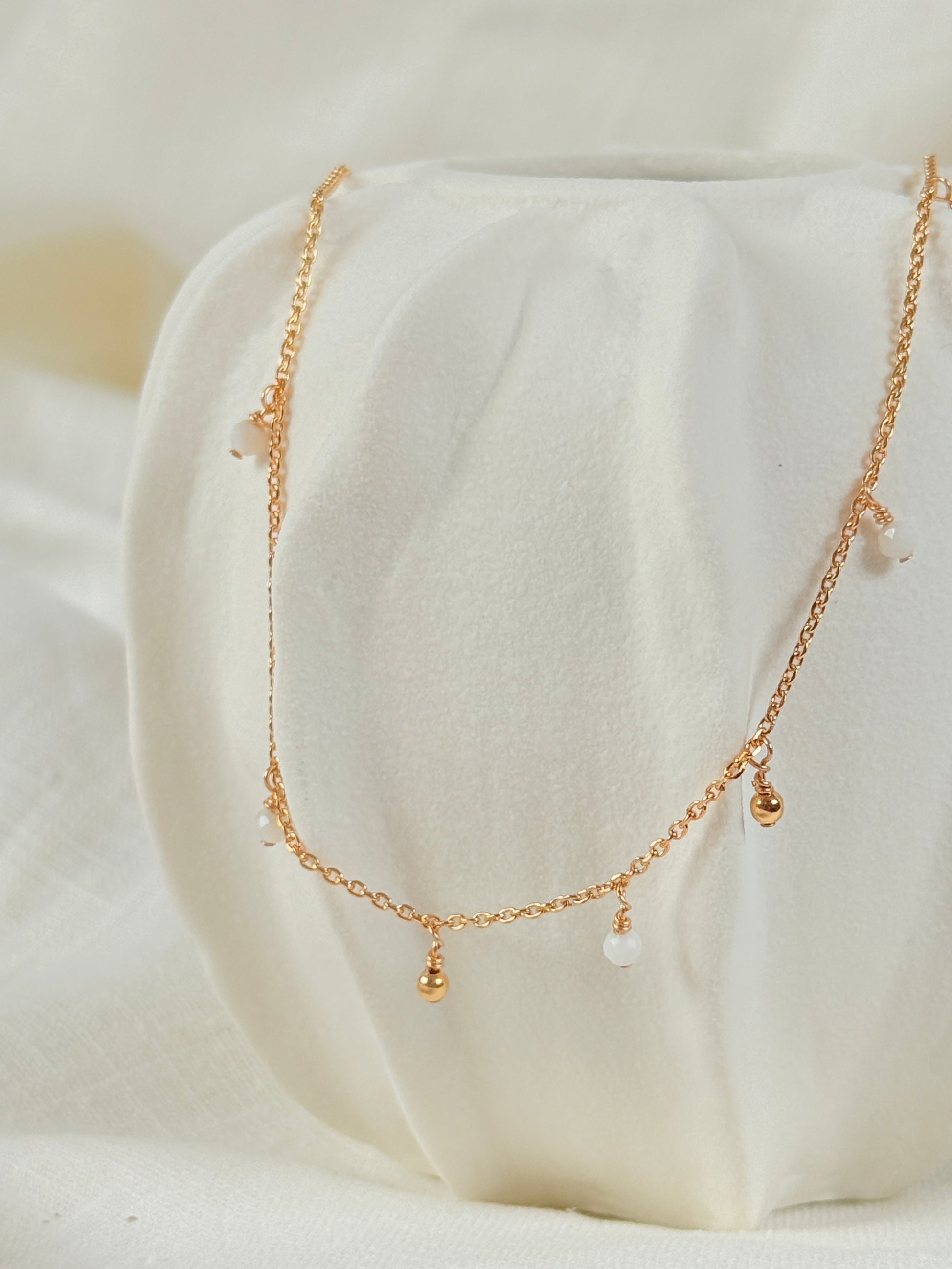Le collier DENISE est un intemporel à avoir dans ses accessoires. Composé d'une chaine en maille fine et de perles de pierres fines pampilles